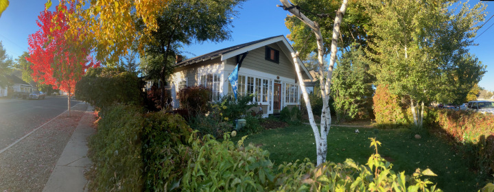 Garden enthusiasts will appreciate the established raised planting beds along with productive blueberry bushes and a dedicated strawberry patch. Situated on a corner lot with an alley behind the garage, the property enjoys added privacy with only one neighboring home. Natural screening from mature trees, arborvitae, bamboo plantings, and cedar fencing further enhances the secluded feel of the space.